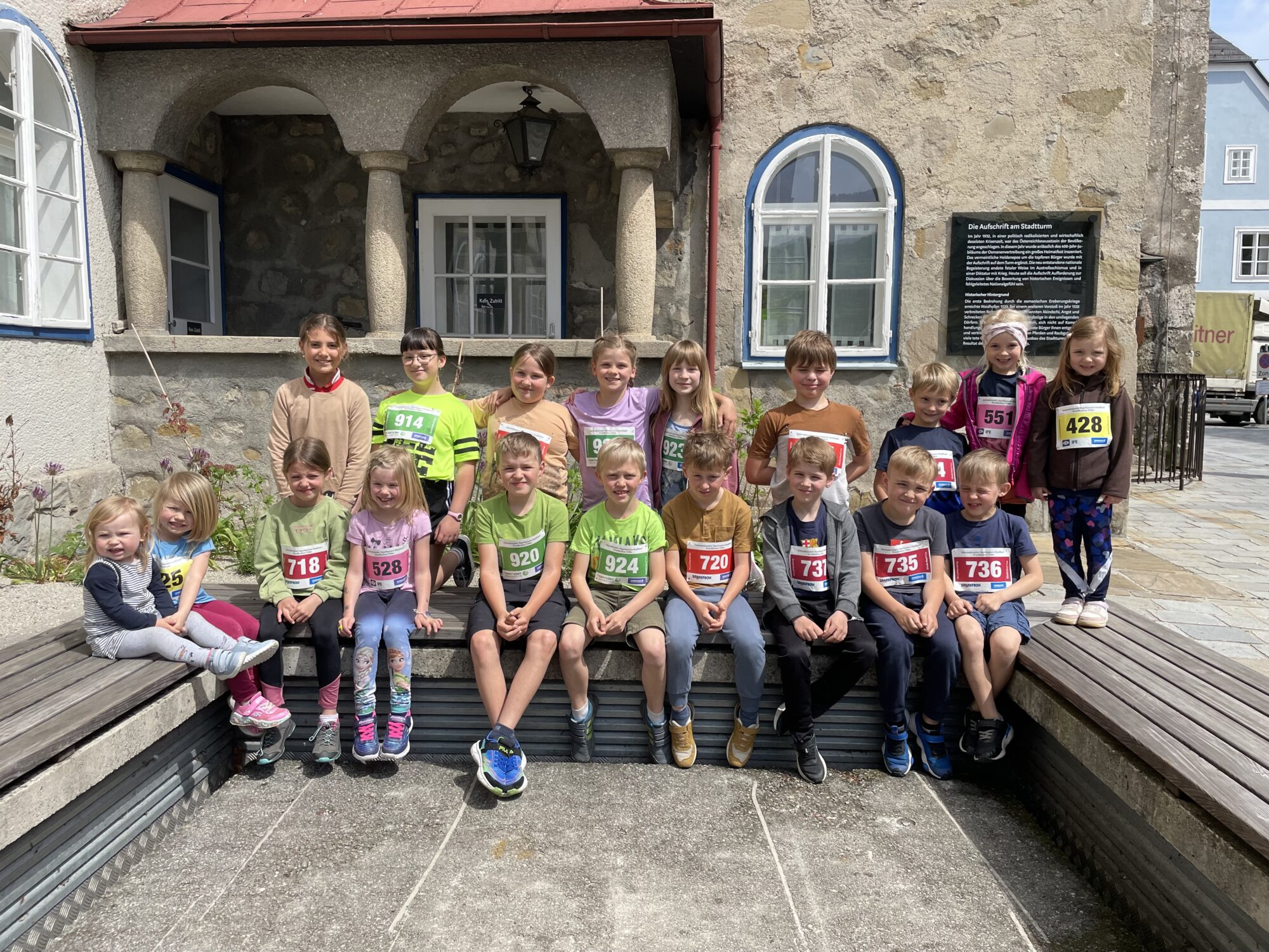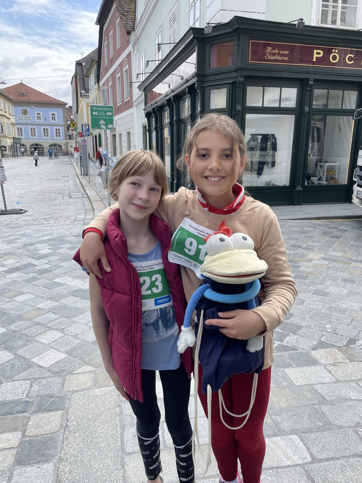 Beim 40. Waidhofner Stadtlauf nahmen 16 Schülerinnen und Schüler aus unserer Schule teil. Das Klassenmaskottchen der 3./4. Klasse durfte natürlich nicht fehlen!