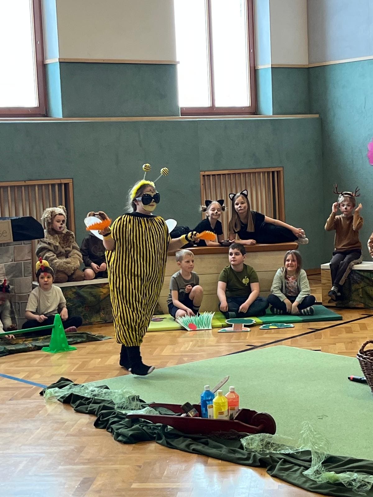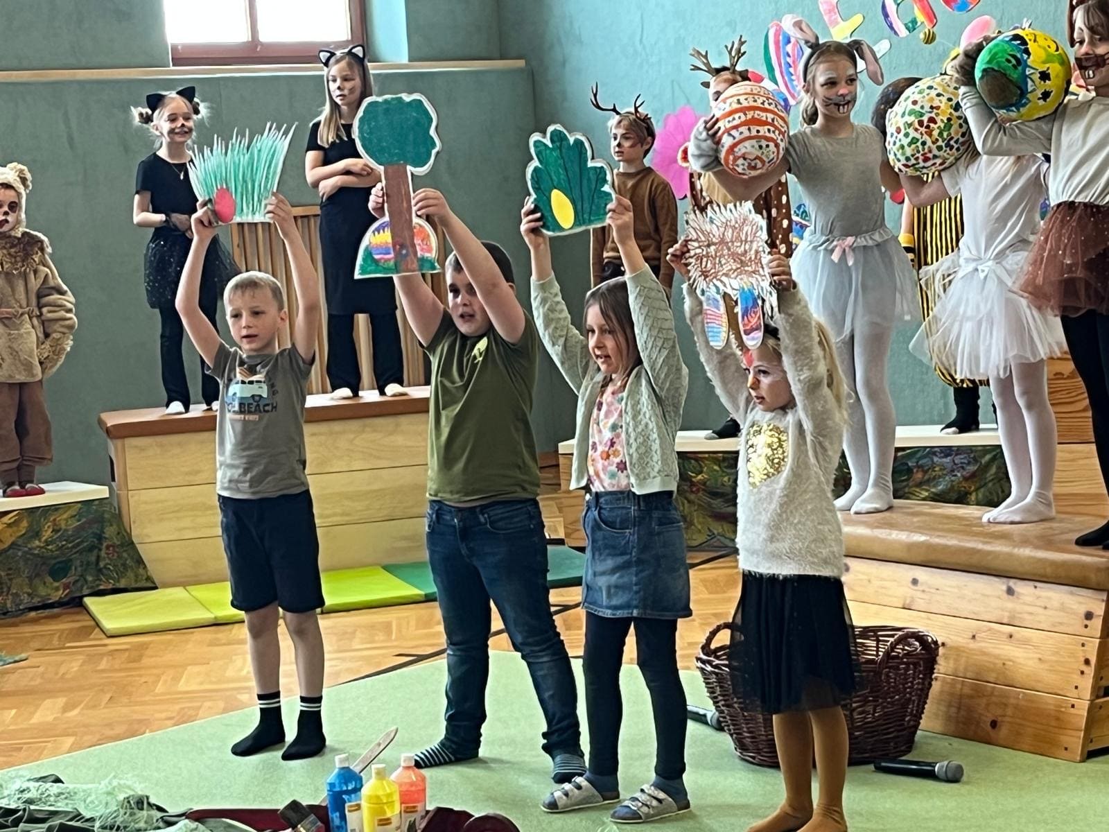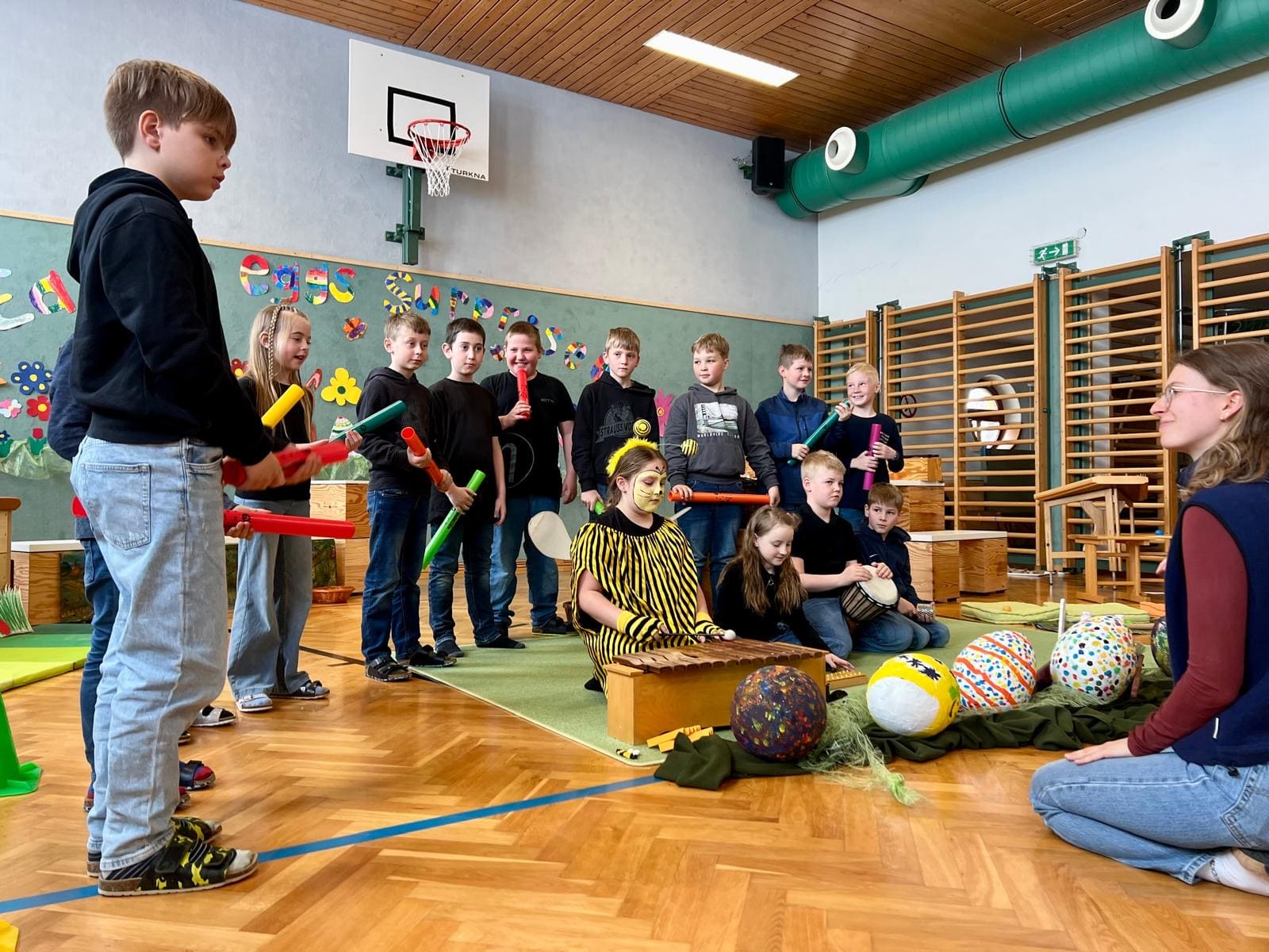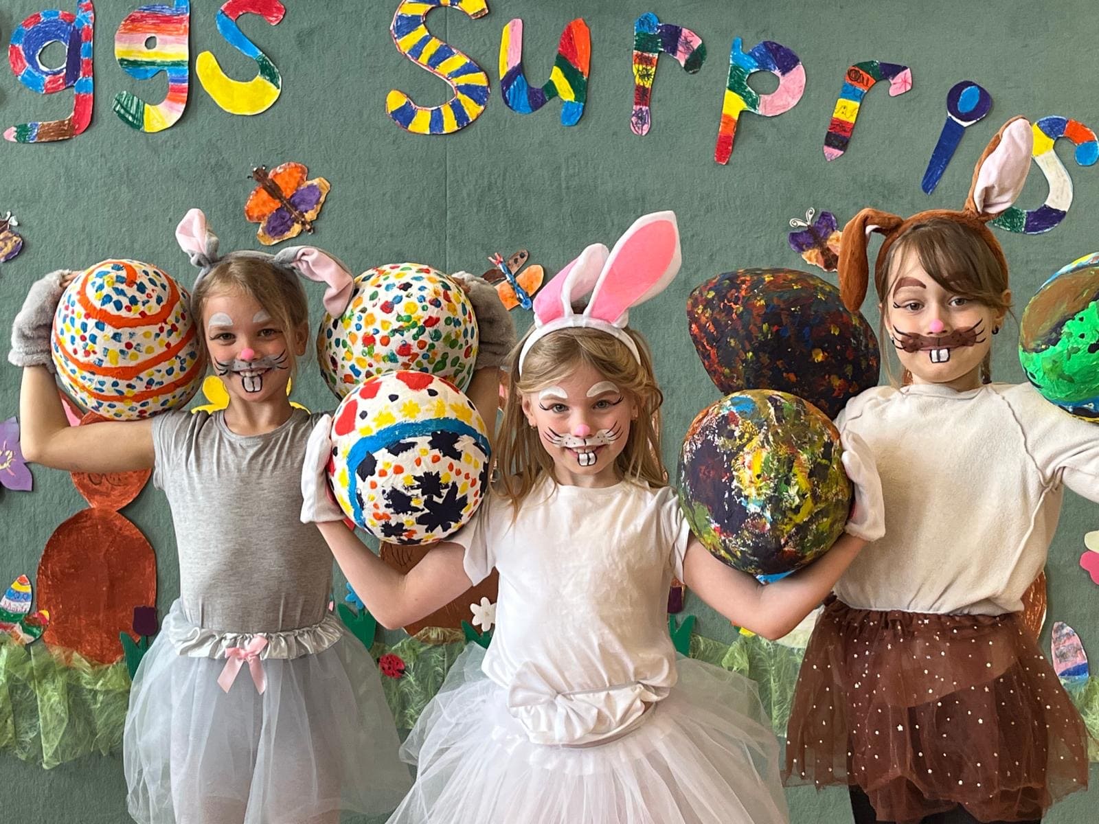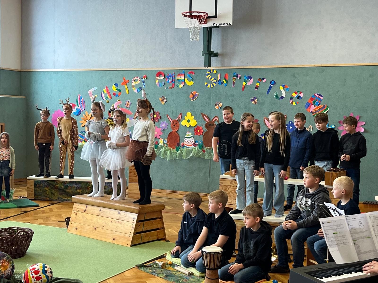 Ein besonderes Highlight vor den Osterferien war unser Oster-Musical „Easter Eggs Surprise“. Die Schülerinnen und Schüler der 1. und 2. Schulstufe begeisterten mit ihrer schauspielerischen Darstellung, während die 3. und 4. Schulstufe gemeinsam mit den Lehrpersonen für die musikalische Begleitung sorgten. Ein großes Lob gilt auch den engagierten Eltern, die unsere Schauspielerinnen und Schauspieler toll geschminkt haben. Besonders gefreut haben wir uns auch über ein Frühlingslied, das von der Kindergartengruppe gesungen wurde.