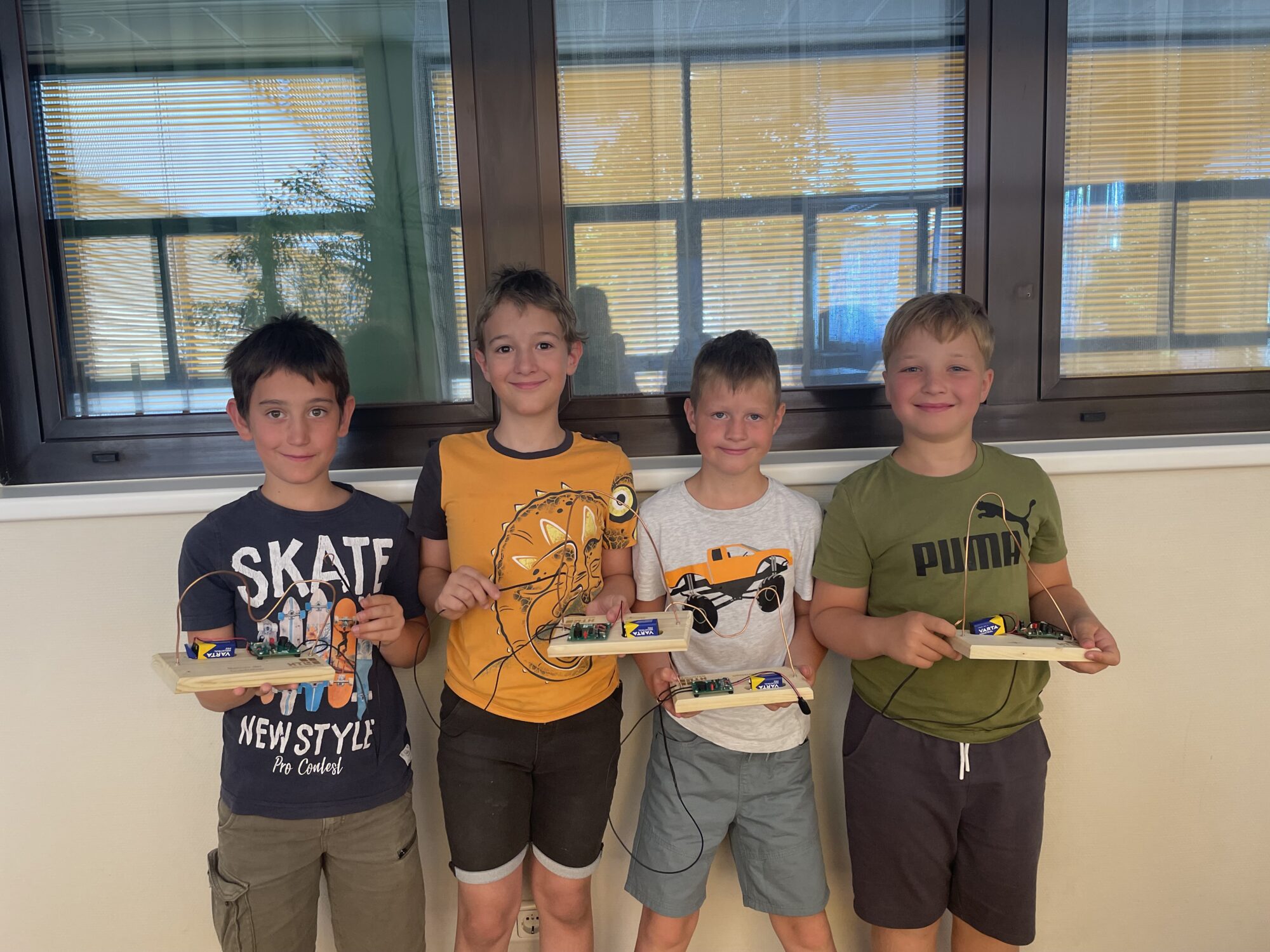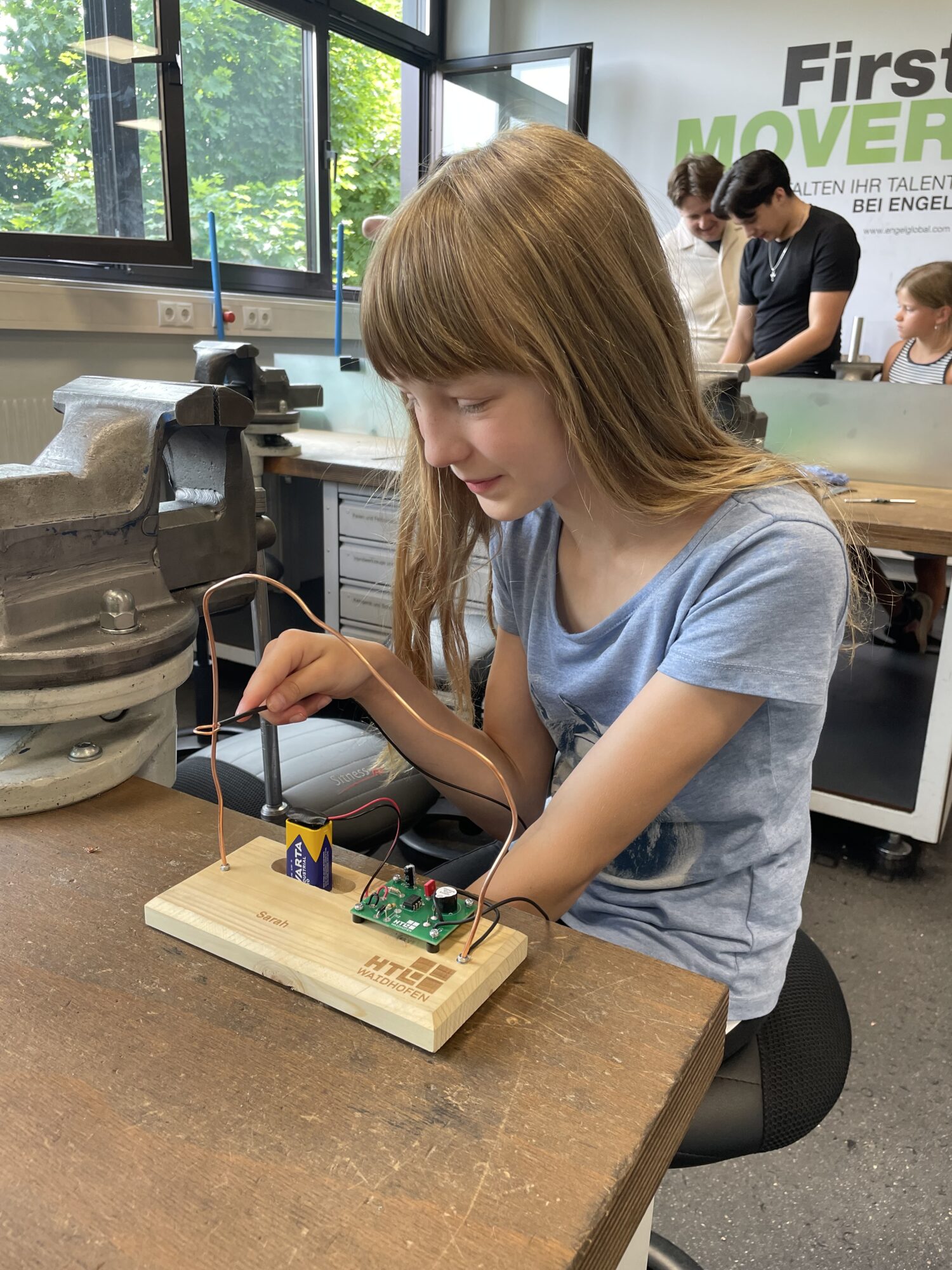 Die Kinder der 2. Klasse durften an der HTL Waidhofen hautnah erleben und bauten mit viel Begeisterung ihr eigenes Geschicklichkeitsspiel. An verschiedenen Stationen konnten sie löten, bohren, fräsen und sogar eine persönliche Gravur erstellen. Am Ende hielten alle stolz ihr fertiges Spiel in den Händen – ein Vormittag voller Freude, Kreativität und Technik!