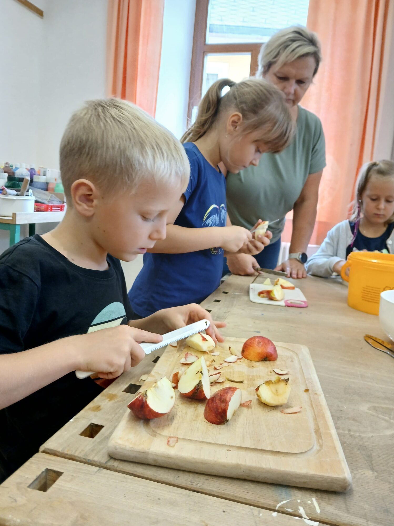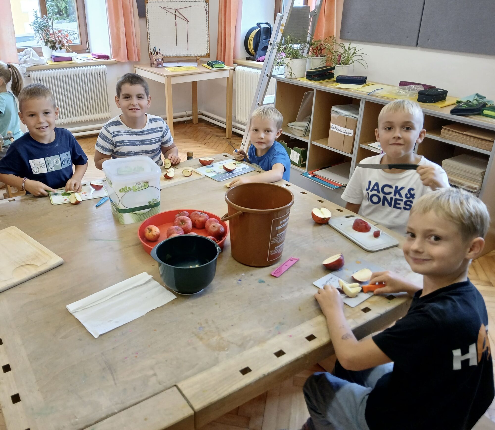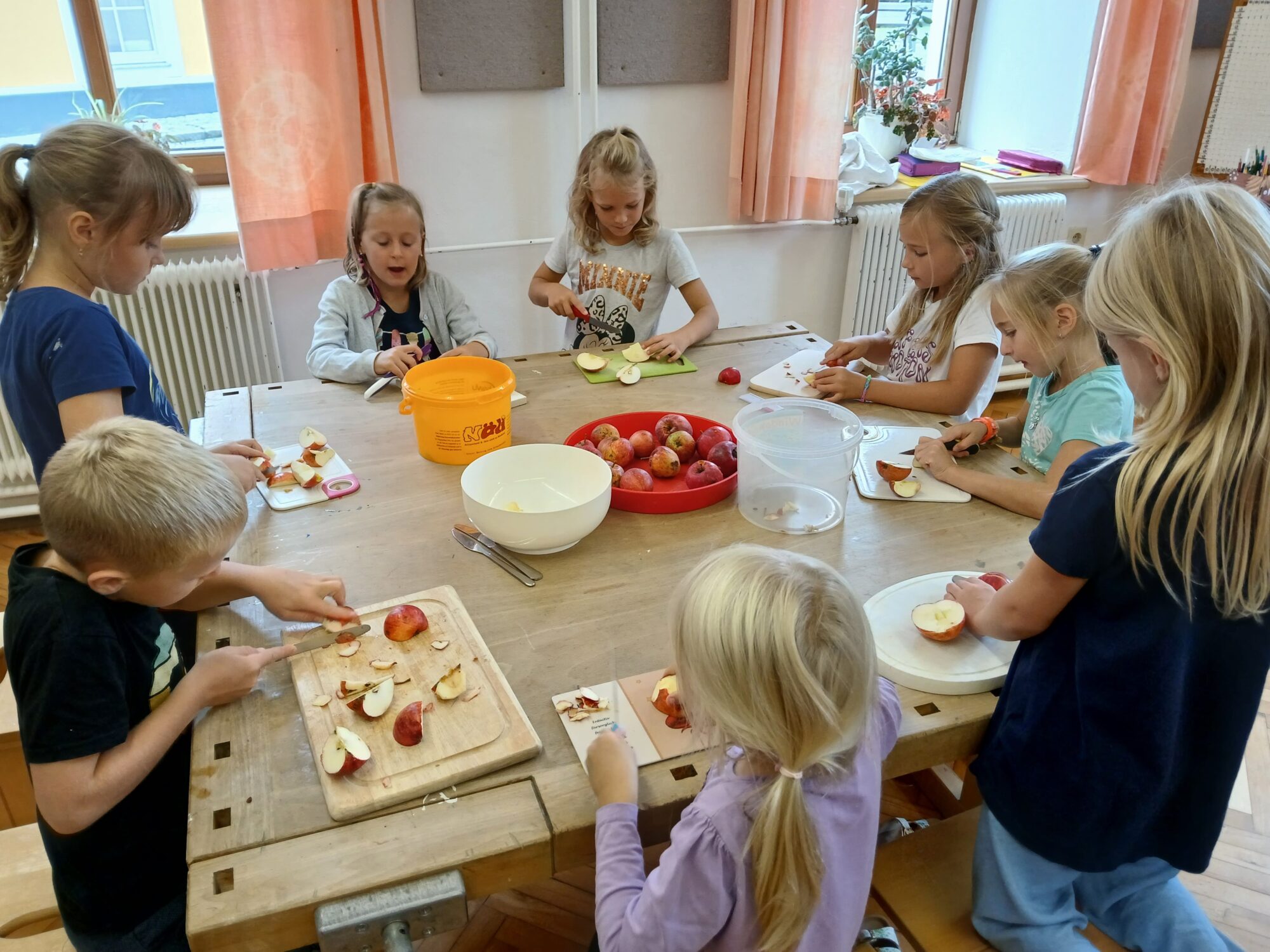 Im Rahmen eines kleinen Herbstprojekts hat die 1. Klasse Apfelmus selbst hergestellt. Die Kinder haben gelernt, wie man Äpfel vorbereitet, sie kocht und zu Mus verarbeitet. Mit viel Freude und Eifer waren alle dabei – und das Ergebnis konnte sich sehen (und schmecken!) lassen. Das gemeinsame Kochen war ein schöner Start in den Herbst!