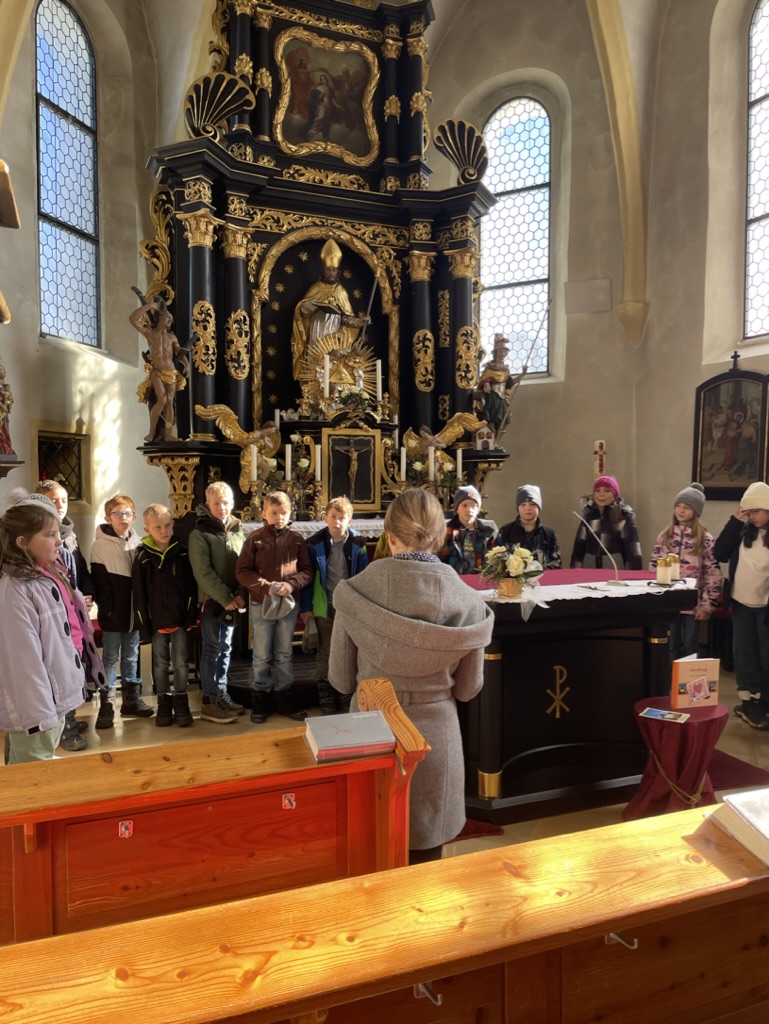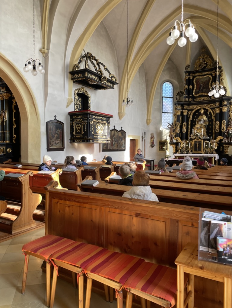 Am 24. Februar durften die Kinder der 3. und 4. Schulstufe mit Isabella und Karl Huber einen Lehrausgang in die Windhager Kirche machen. Es waren sehr spannende Eindrücke mit vielen neuen Informationen.
