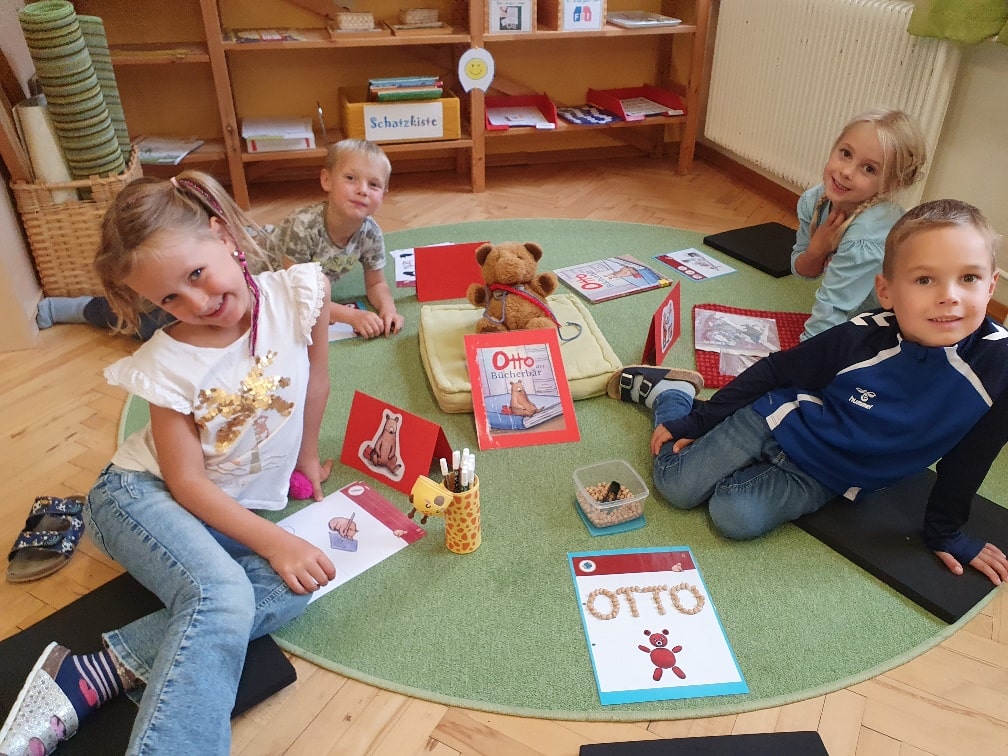 Der Bücherbär Otto war zu Gast in der 1. Klasse. Gemeinsam mit ihrer Lehrerin hörten die Kinder eine spannende Bilderbuchgeschichte. Im Anschluss durften sie an verschiedenen Stationen das Thema weiter entdecken – sie lösten kleine Aufgaben rund um die Geschichte.