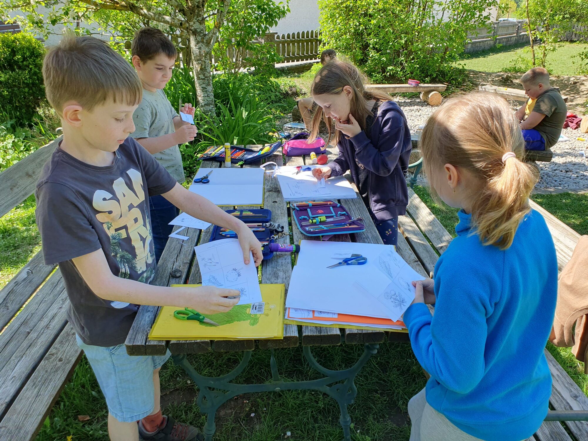 Die 1. und 2. Klasse verlegte den Sachunterricht in den Schulgarten – ein perfekter Ort, um mehr über Pflanzen zu lernen.