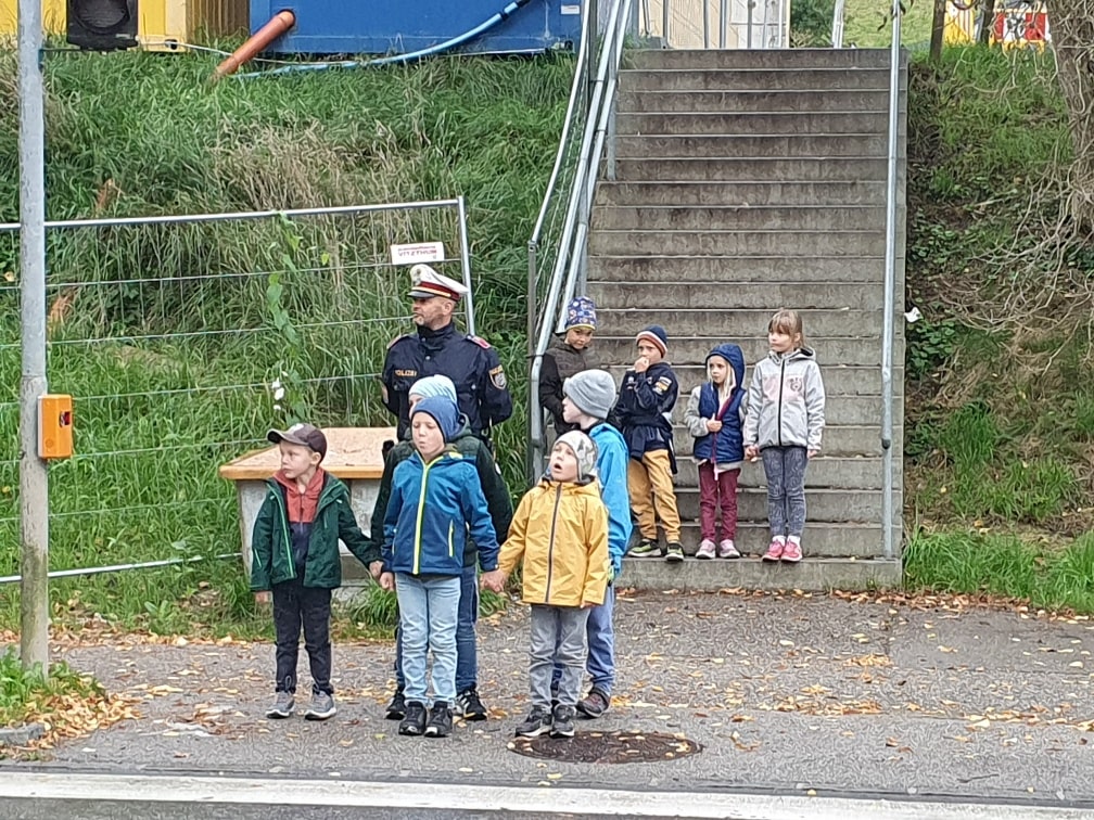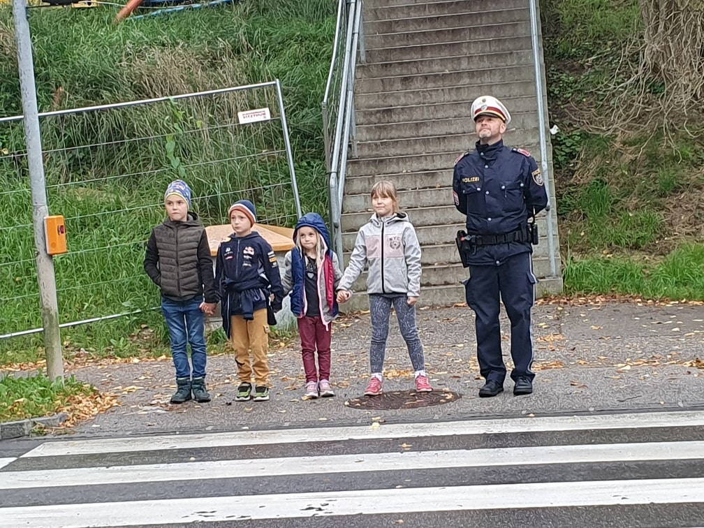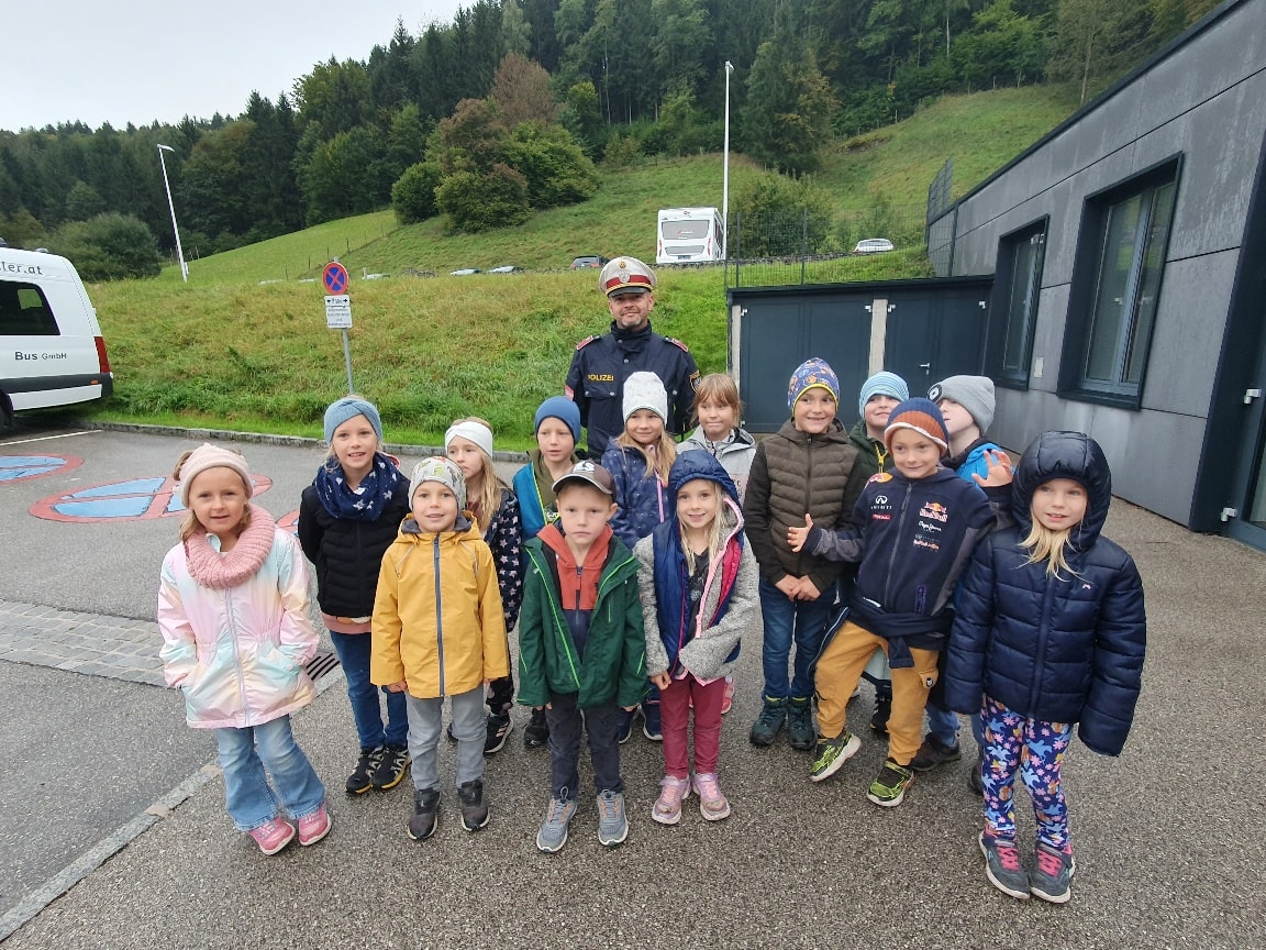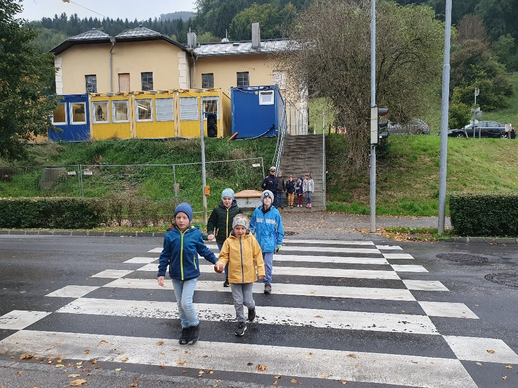 Die Kinder der 1. Klasse machten einen Ausflug nach Waidhofen, um dort etwas ganz Wichtiges zu lernen: Wie man richtig und sicher über die Straße geht! Ein Polizist zeigte den Schülerinnen und Schülern, worauf man im Straßenverkehr achten muss. Alle durften das richtige Überqueren der Straße natürlich auch selbst üben. Jetzt wissen unsere Schüler*innen genau, wie man sicher ans Ziel kommt!