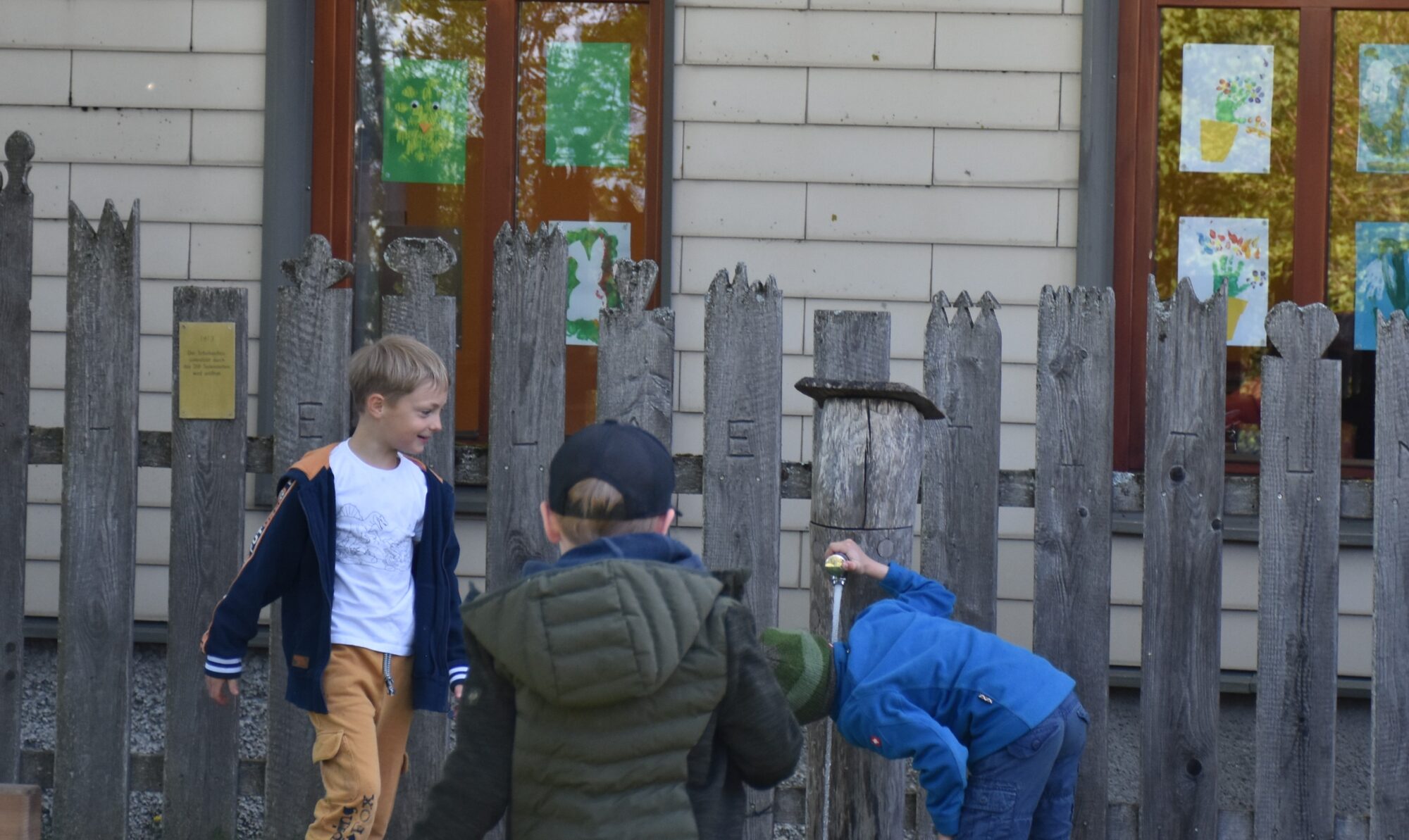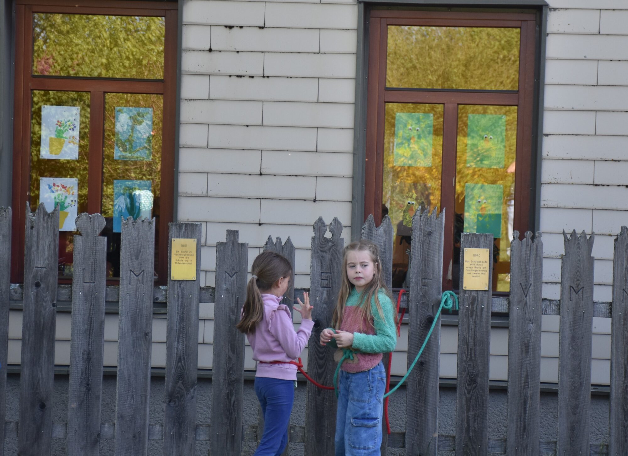 Die Schule wurde durch einen Brand stark beschädigt und wieder aufgebaut.