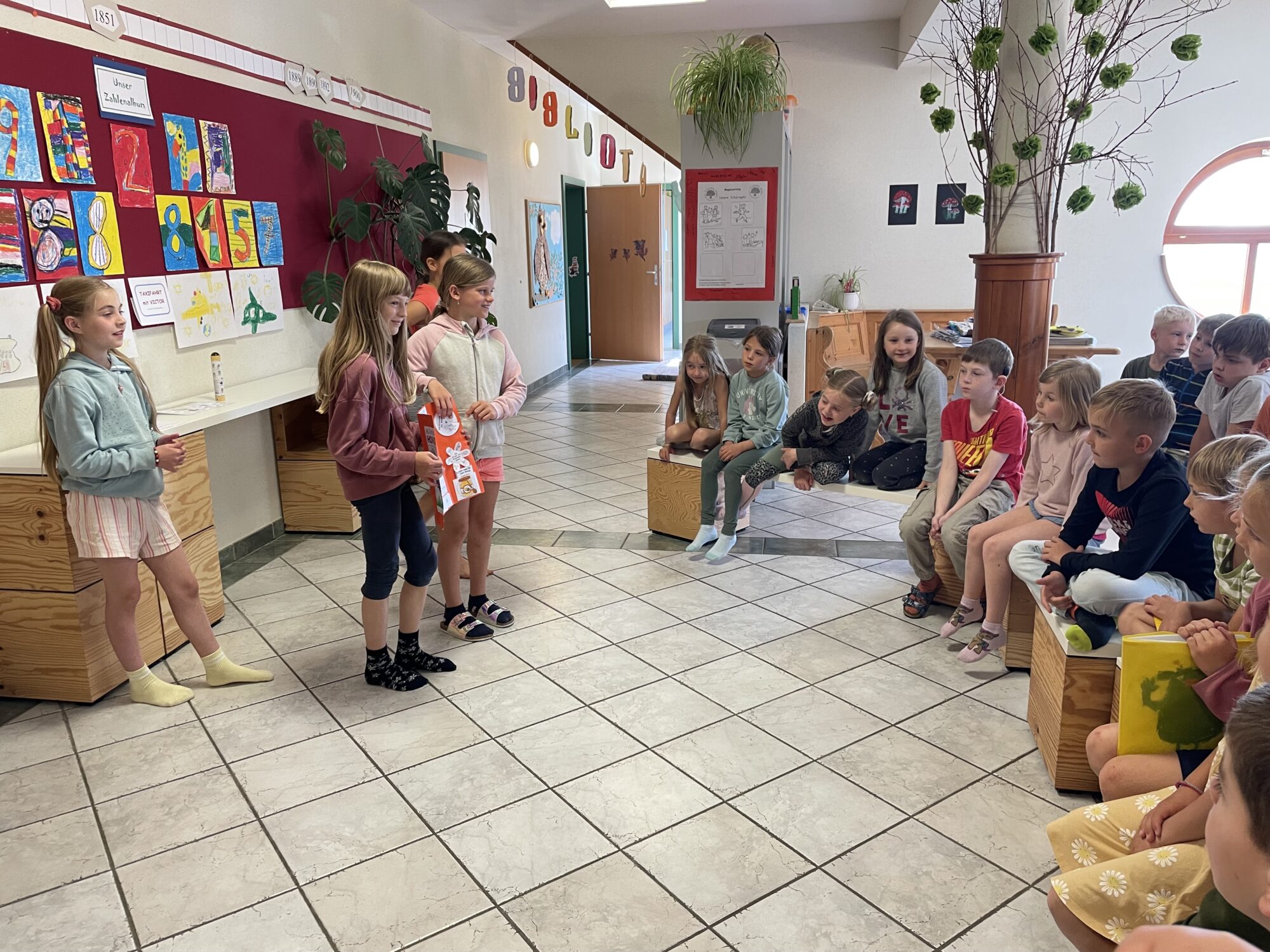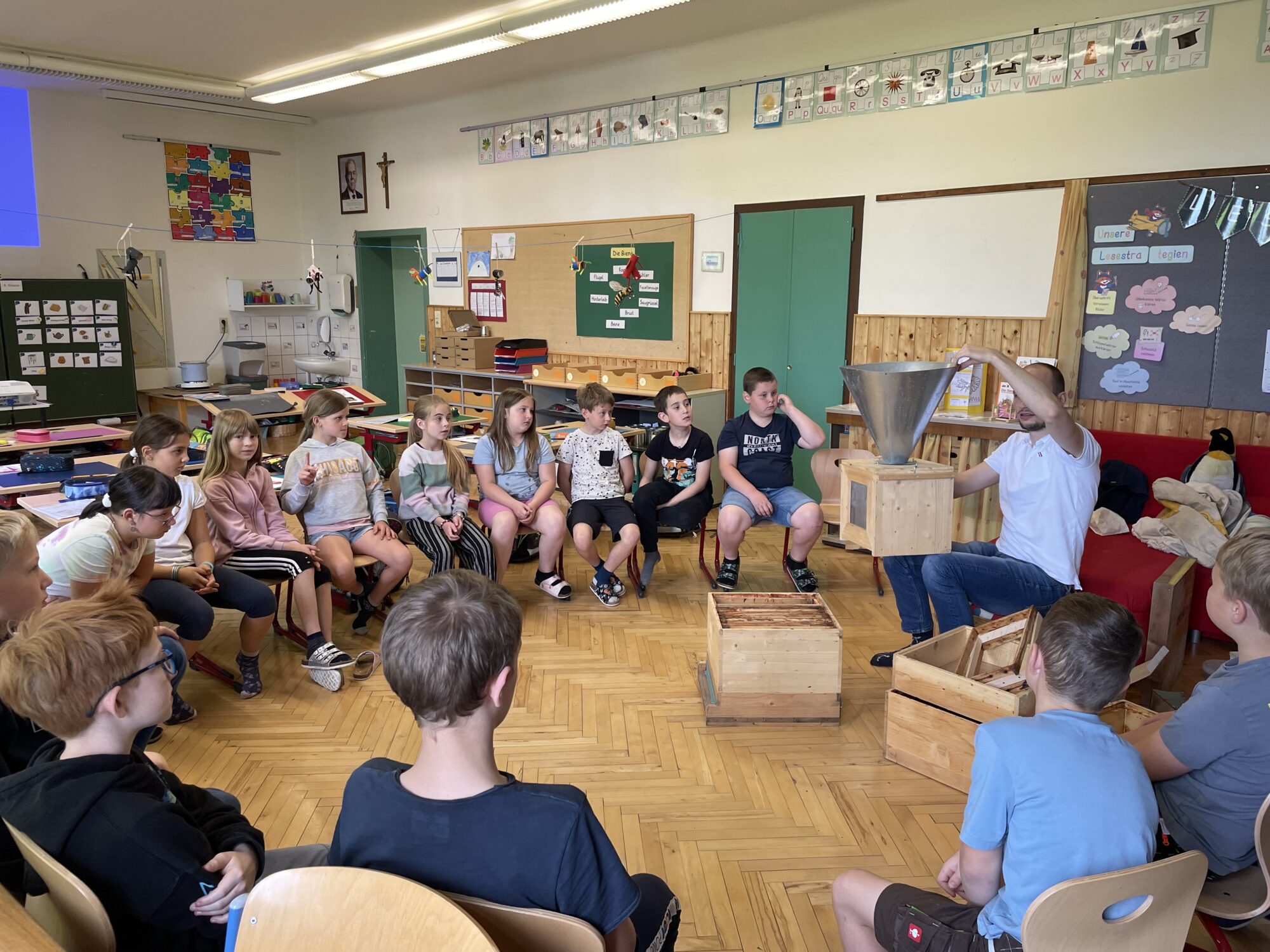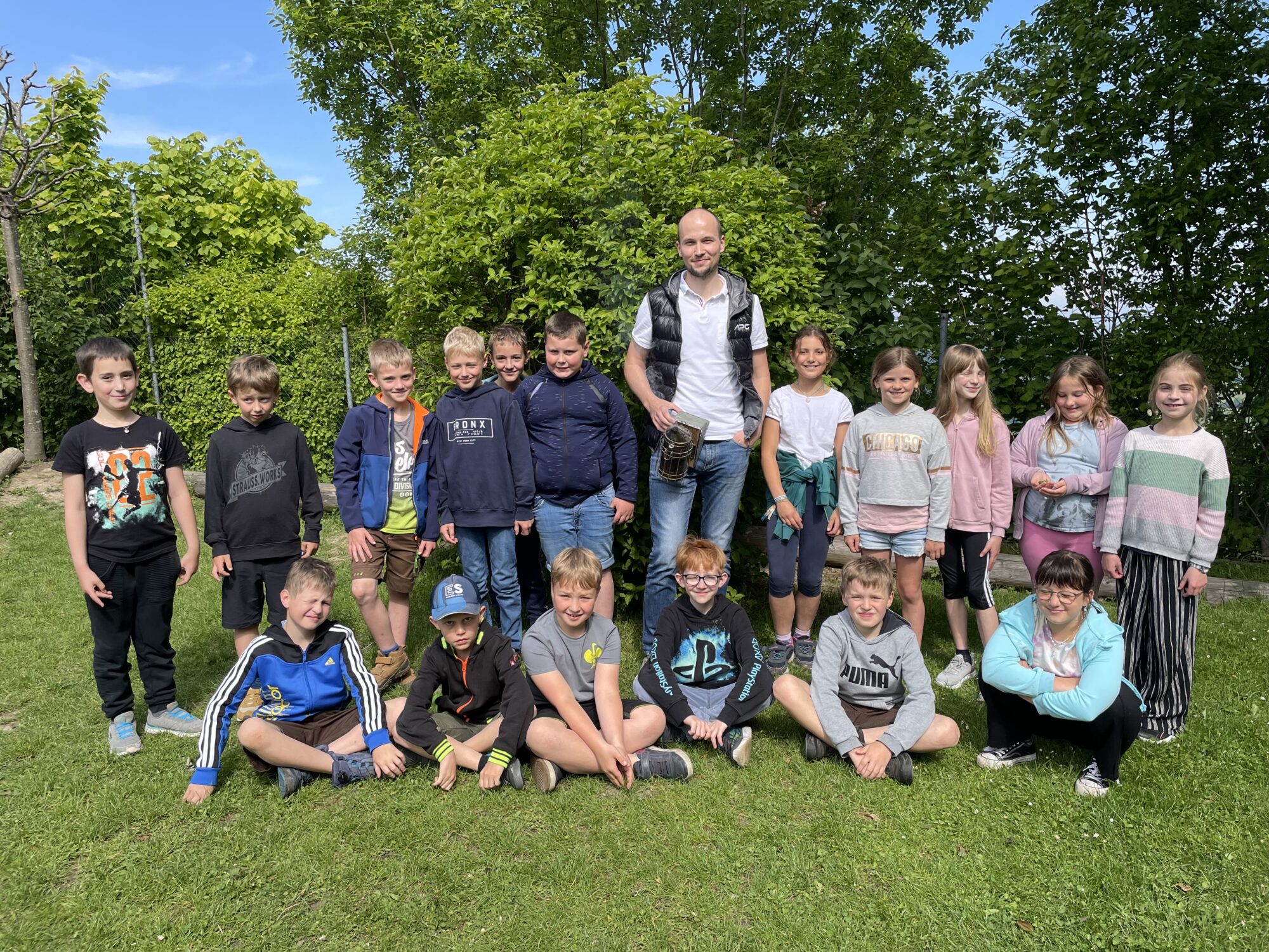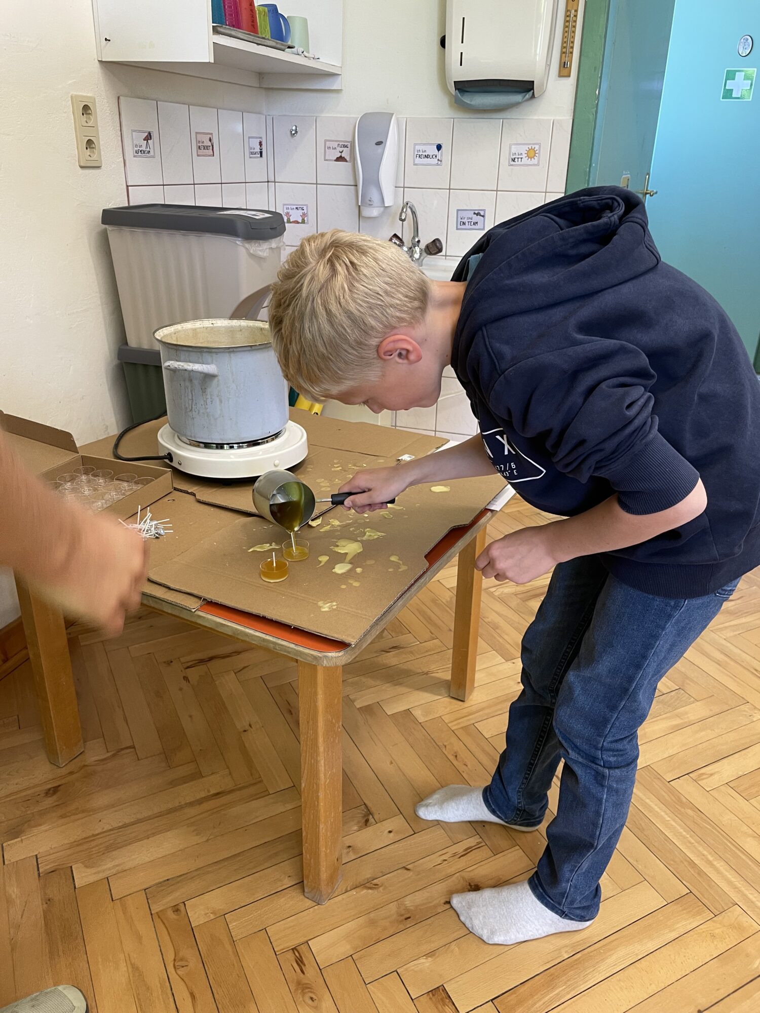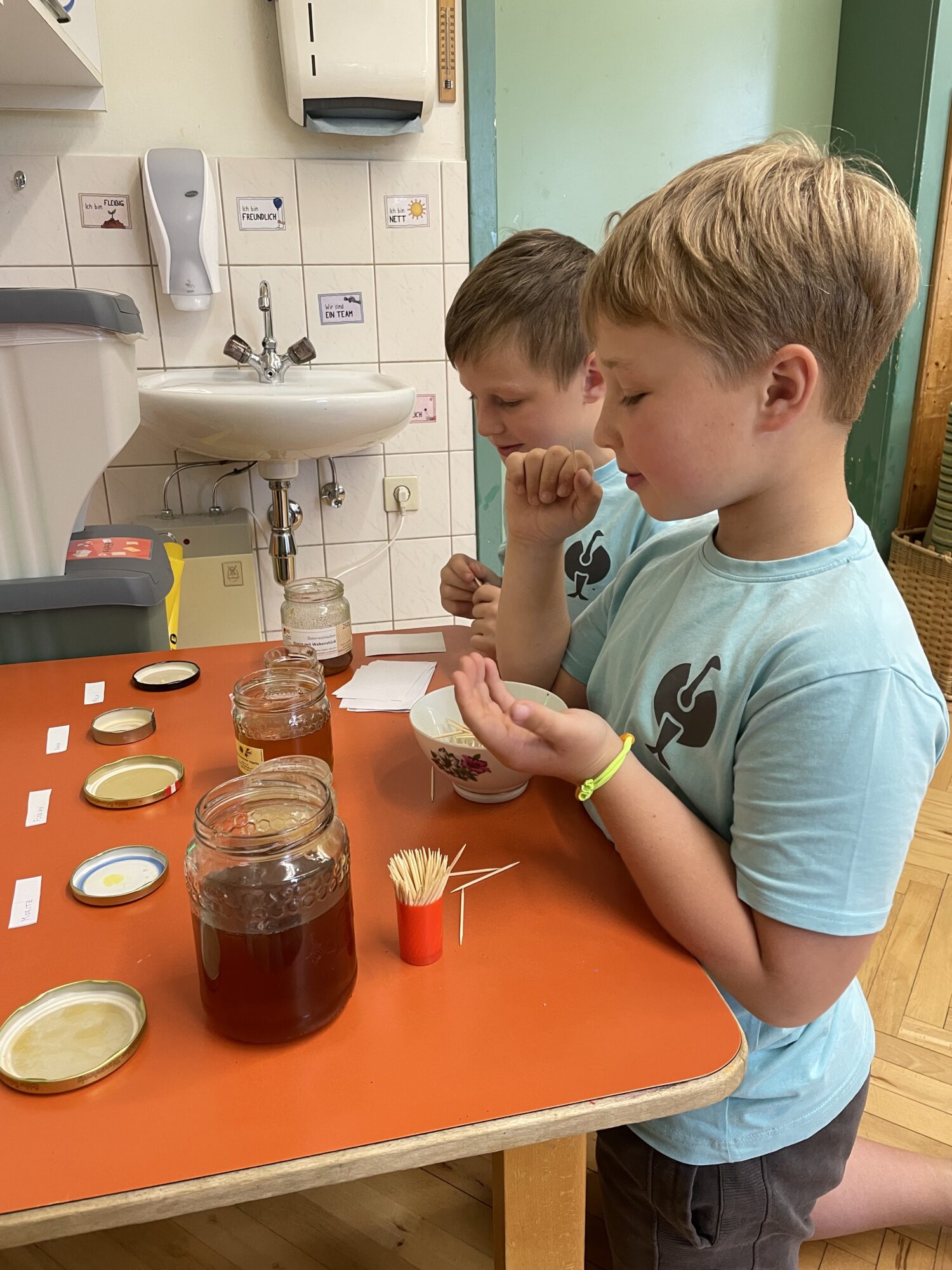 Zwei Wochen lang drehte sich bei uns alles um die Bienen! Die Kinder erstellten ein Lapbook zur Honigbiene, bekamen Besuch von dem Imker Tobias Vomela, gossen Bienenwachskerzen – und als krönenden Abschluss gab es eine Honigverkostung. Was für eine spannende Zeit!