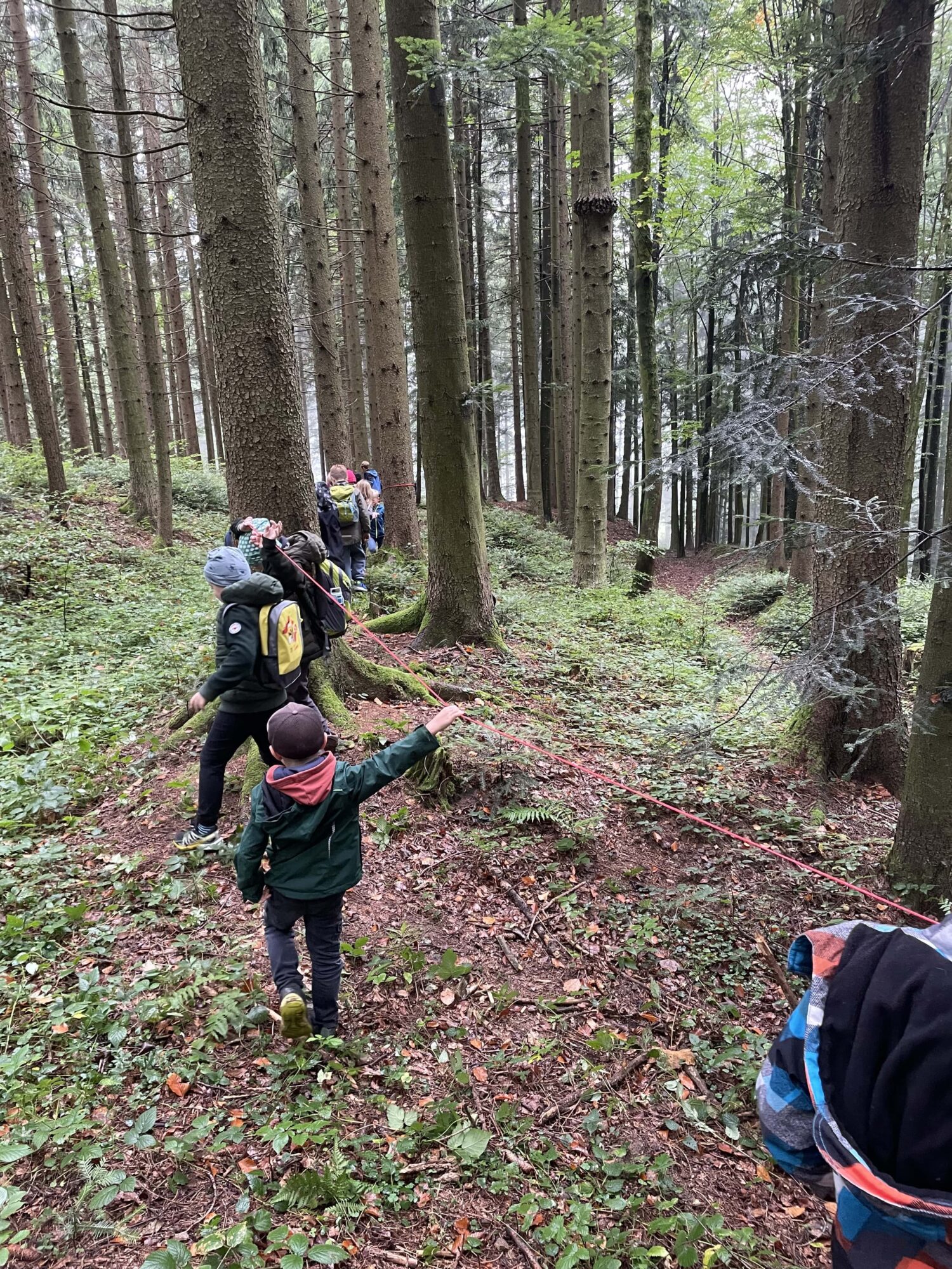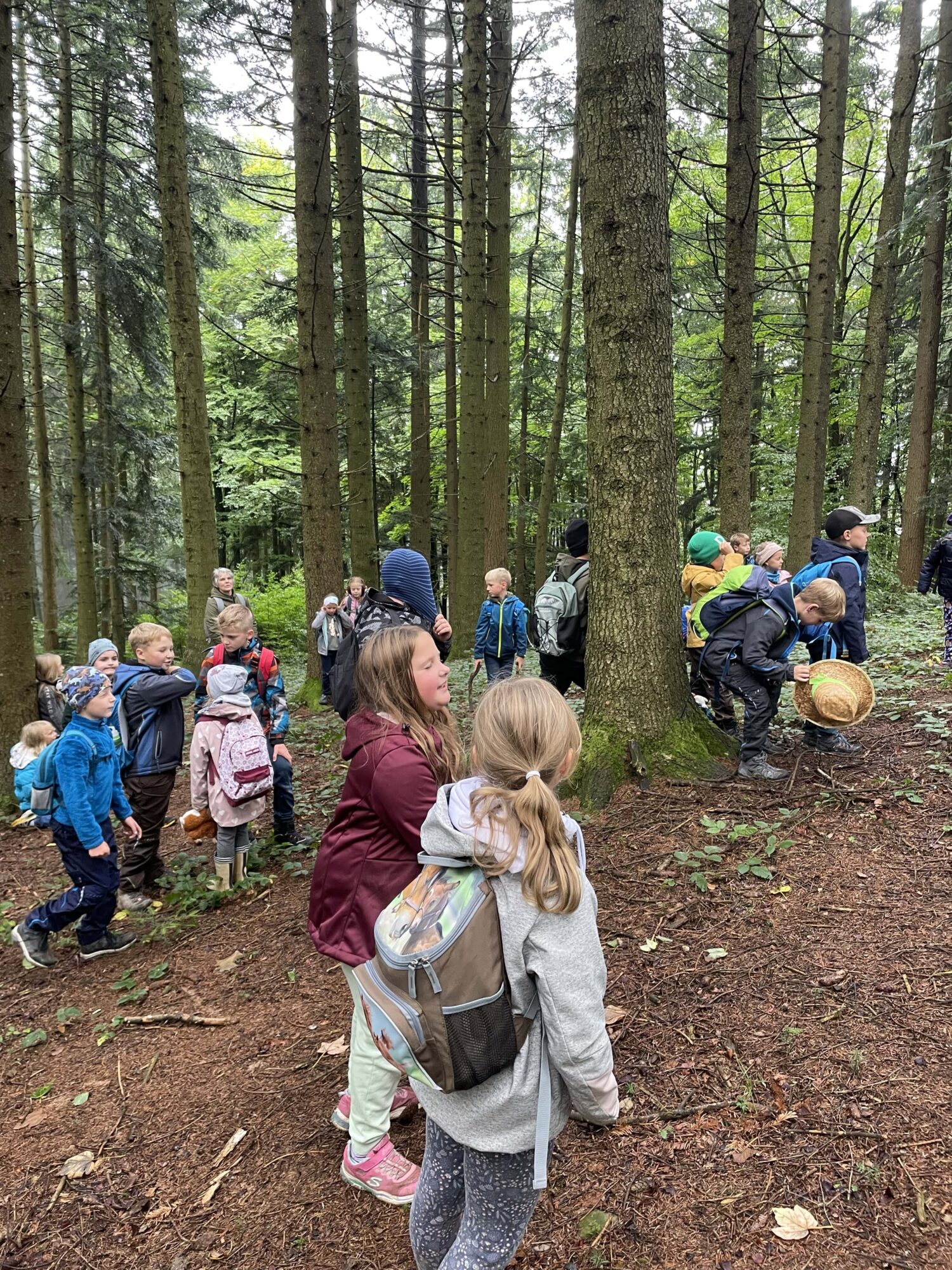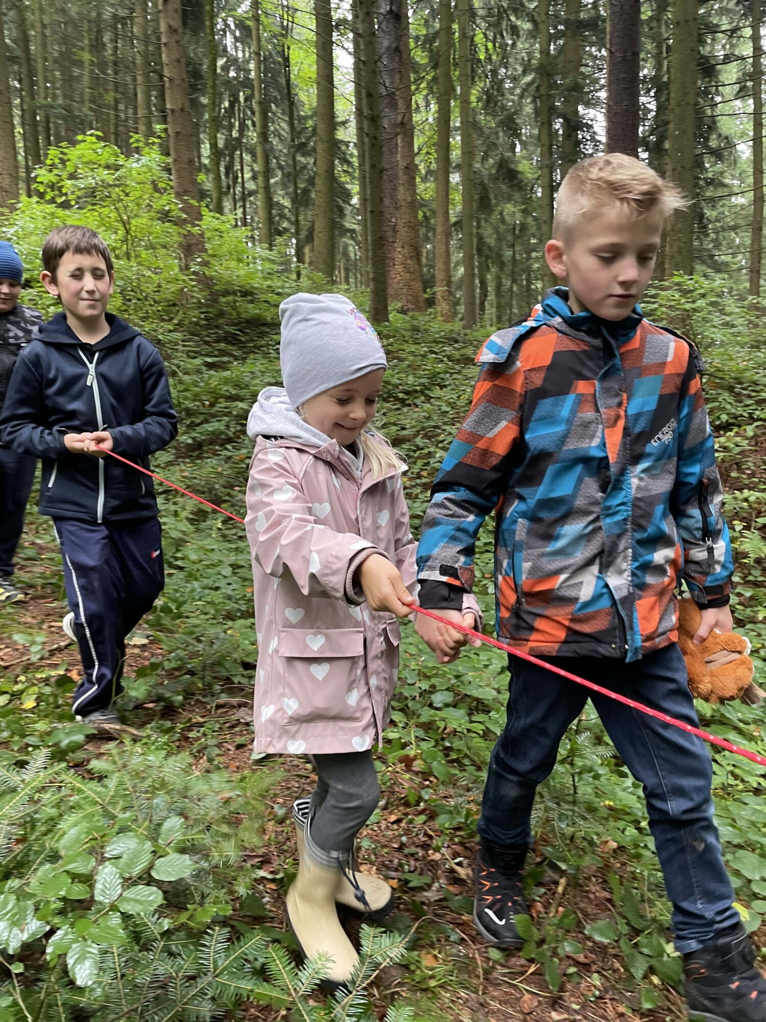 Beim ersten Waldtag lernten die Kinder wichtige Waldregeln kennen. Sie suchten sich mit einem zweiten Kind einen Baum aus, den sie das ganze Jahr über beobachten werden. An einer Schnur tasteten sich die Kinder mit geschlossenen Augen durch den Wald. Ein paar Kinder durften sogar einen Feuersalamander beobachten! Ein schöner Beginn für viele weitere Waldtage in diesem Schuljahr!