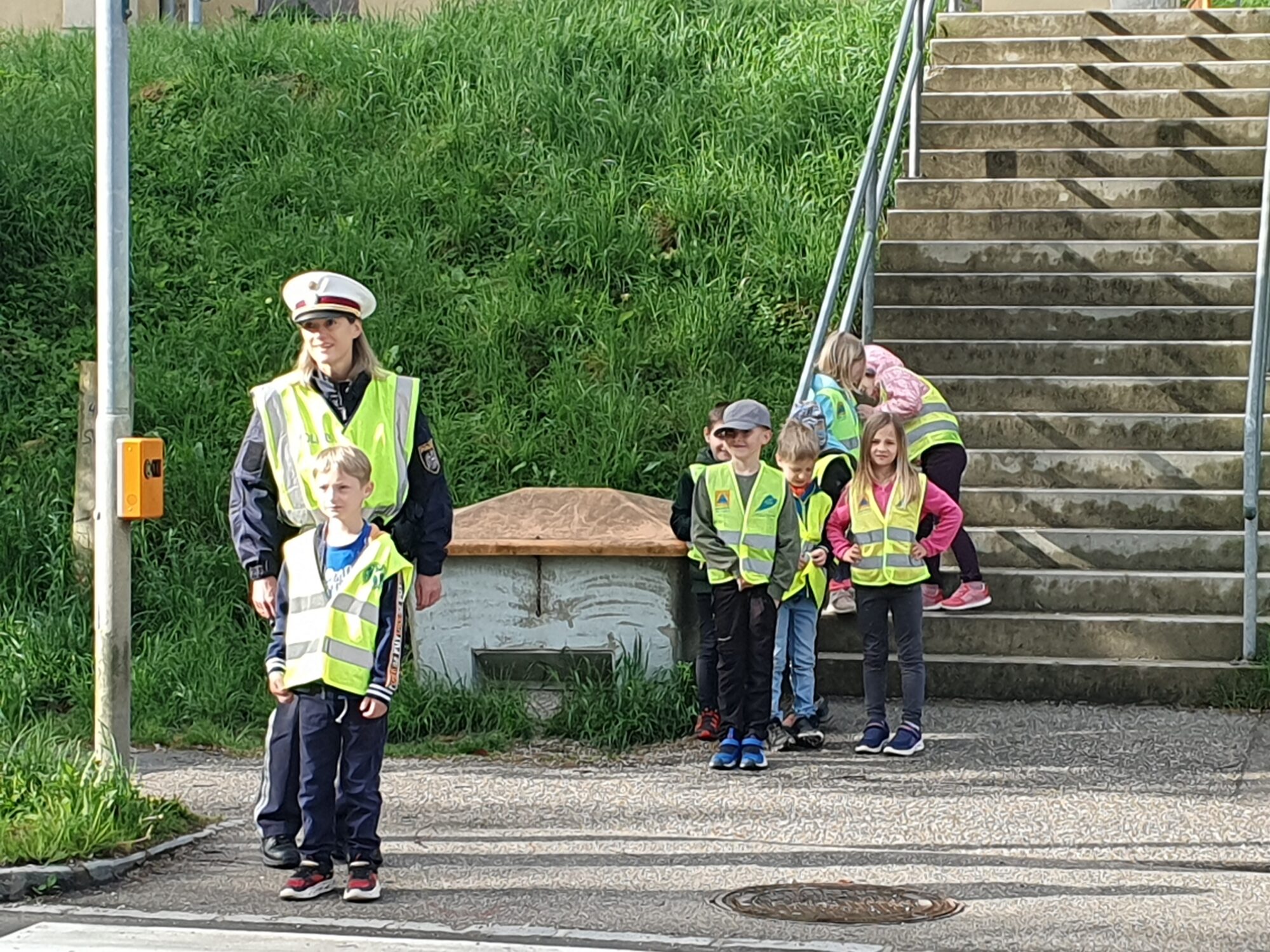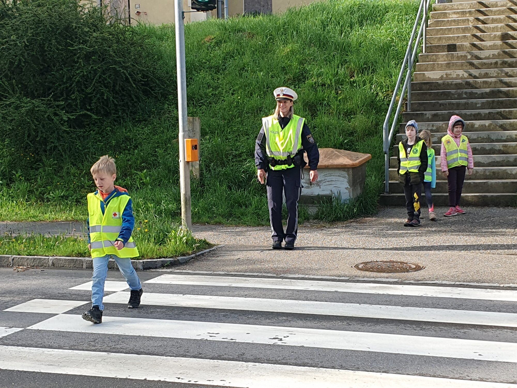 Die Kinder der 1. Klasse lernten wichtige Verkehrsregeln und durften ihr Wissen gleich selbst anwenden.