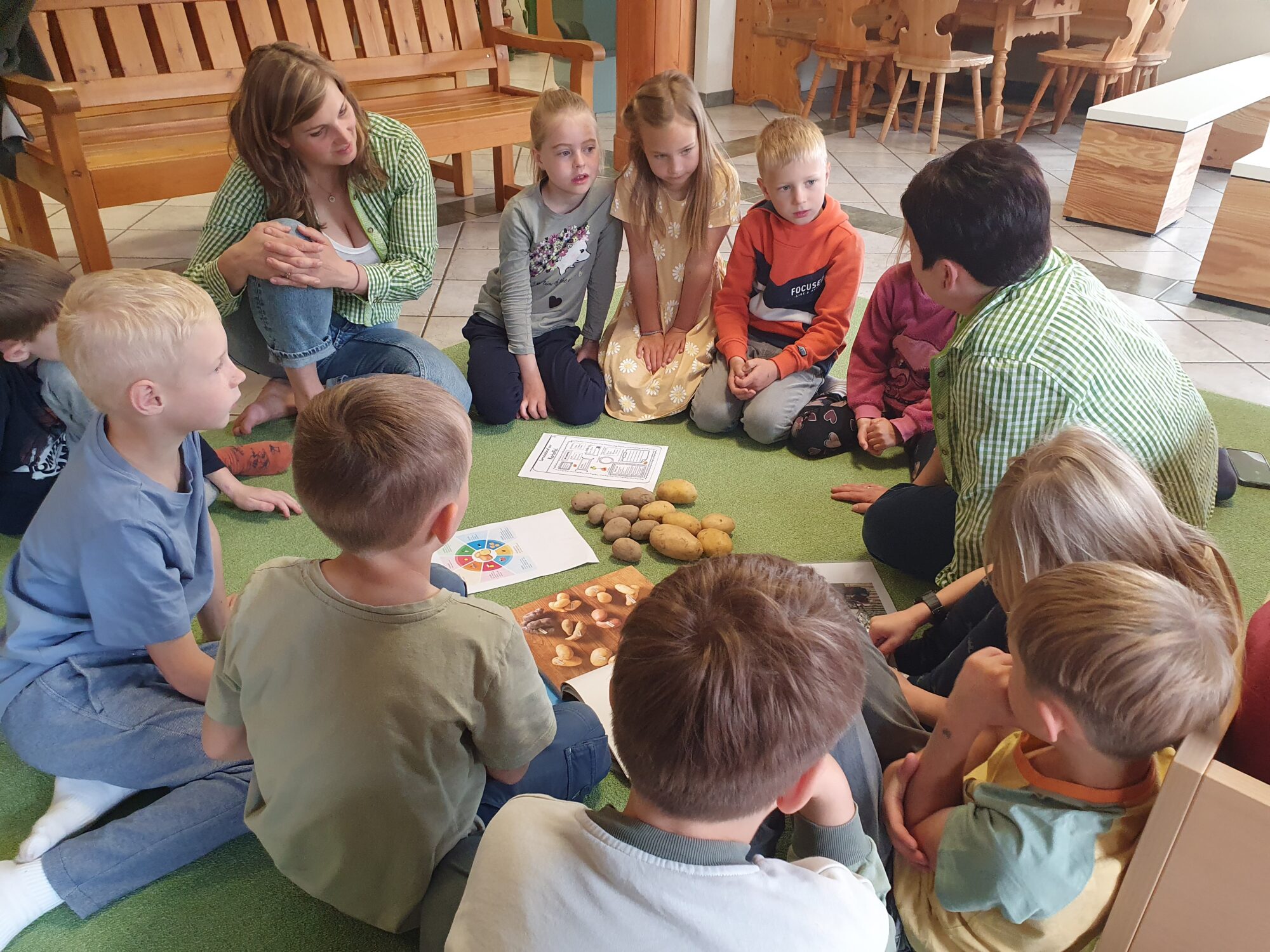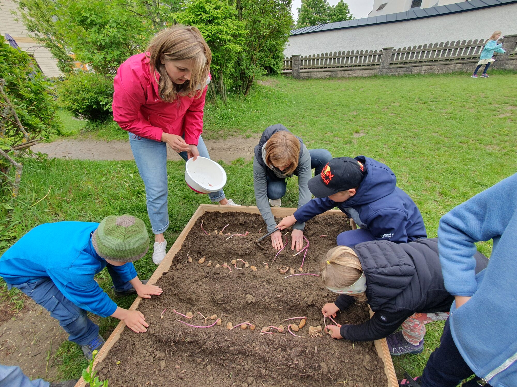 m Rahmen eines Workshops mit den Bäuerinnen erfuhren die Schüler*innen der 1. und 2. Klasse Spannendes über Erdäpfel. Der Höhepunkt war das gemeinsame Einpflanzen von Erdäpfeln im Schulgarten.